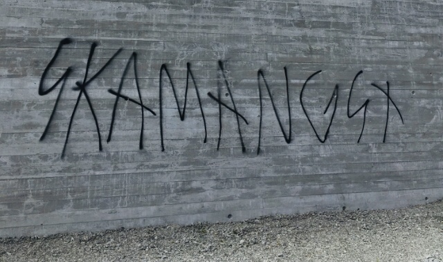 Stoppet ved ordene på muren.