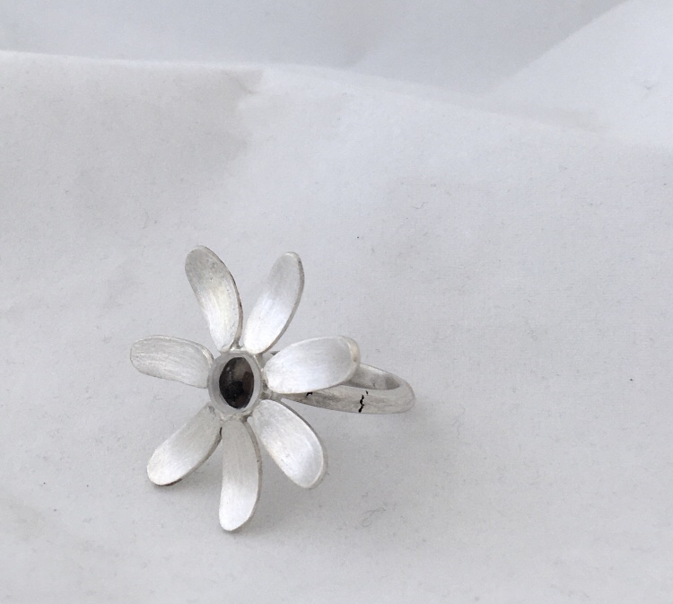 En hånd med en brennende fyrstikk har satt en blomst i brann.