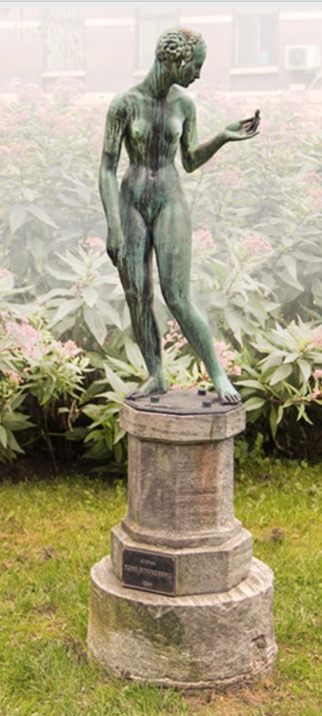 En av mennene i ekspedisjonen var fotografen Nils Strindberg. Han var den som døde først, den eneste av de tre unge mennene som var gravlagt. Faren var fetter til August Strindberg, og wikipediartikkelen fører meg videre til broren hans Tore Strindberg som var billedhogger: «Mest kjent er «Crokus», en skulptur av en ung pike som symboliserer ungdomstidens forgjengelighet» Krokus. Jeg har hatt krokus på tunga i det siste. Som smaken av safran. Som lys, forvandling, trass.Jeg skriver «krokus skulptur» i søkefeltet og ser en bronseskulptur av en naken jente stående med en krokus i venstre hånd.